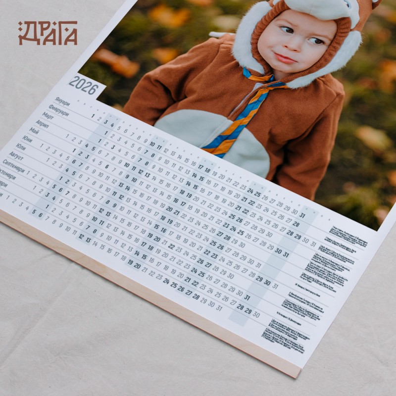 Персонализиран еднолистов календар със снимка