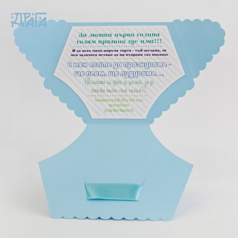 Можете да персонализирате с ваше послание на „памперс частта“ на поканата.