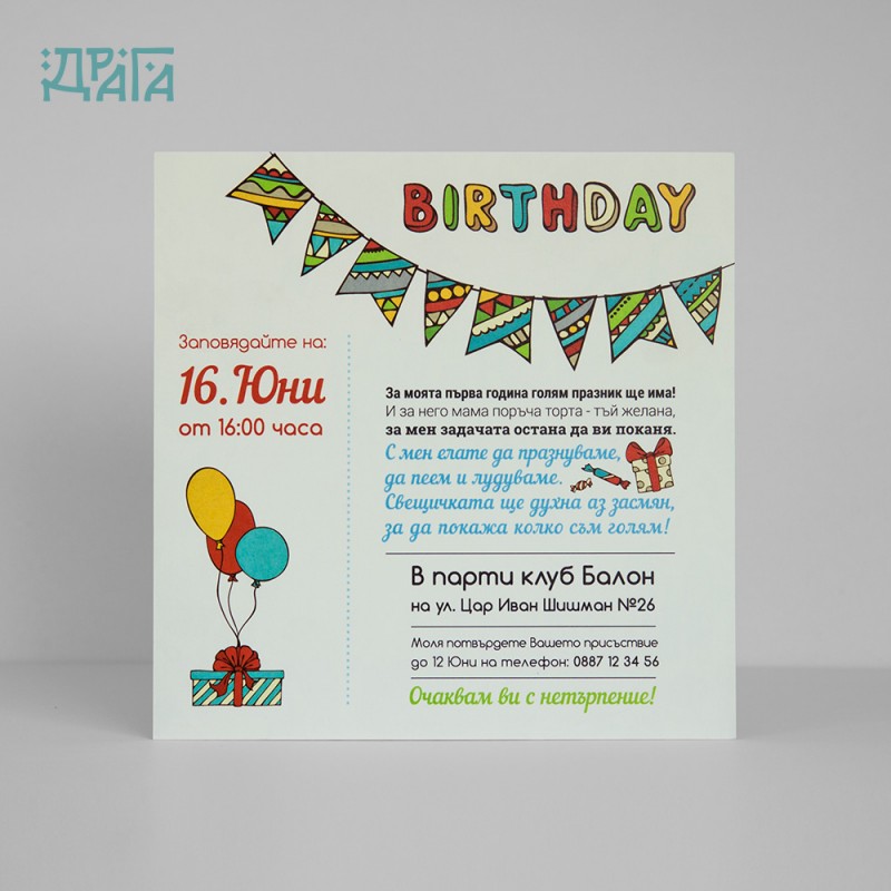 Покана-мечта за всеки малчуган, който гледа напълно сериозно на своя рожден ден и иска всичко да е по вкуса му.